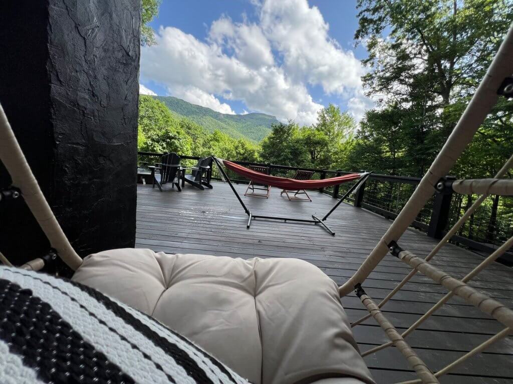 Step 13: Walk past the Swinging Egg Chairs toward your entrance.