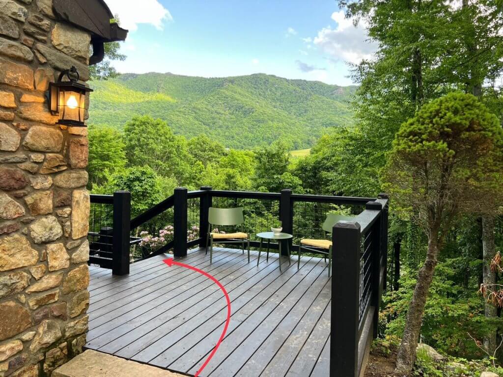 Step 11: Walk down the stairs toward the deck.